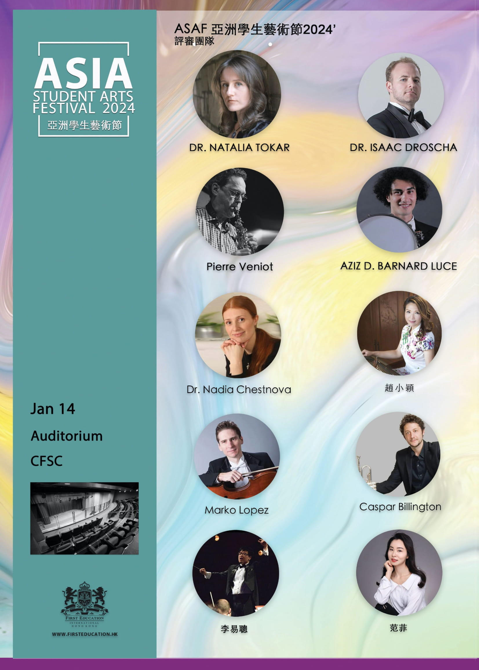East-West Music and Dance Competition.The ASAF Asia Students Arts Festival is organized annually by the First Education Group. It attracts performing arts enthusiasts from Hong Kong, Macau, Thailand, China, Taiwan, Singapore, Malaysia, Indonesia, and Australia to exchange classical, modern, Eastern, and Western music and dance. It provides a platform for Asian performing arts students to showcase their talents and engage in cultural exchange.The judging panel consists of professionals from Europe, North America, and Asia, integrating diverse artistic cultures.Since 2019, ASAF has expanded to include competition zones in Shenzhen, Guangzhou, and Chengdu in China, Macau in 2020, Thailand in 2022, Zhuhai in 2023, Australia in 2024, Singapore and Indonesia in 2025, and Malaysia in 2026.